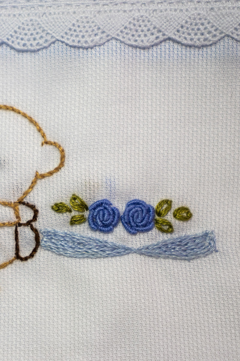 Fraldinha de boca com tecido suave e macio, bordada à mão. Pura delicadeza.