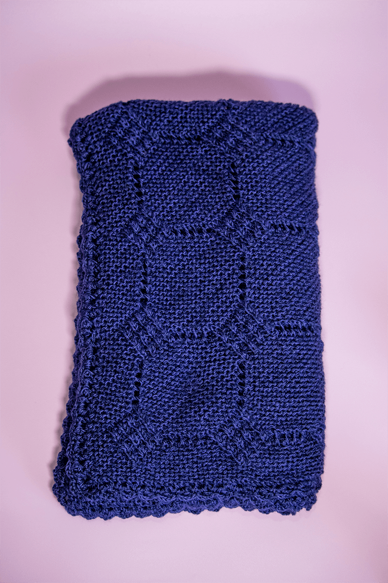 Manta de tricô para bebê tecida com lã 100% hipoalergênica.